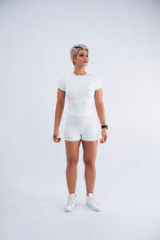 Made for performance. Curated with a soft, comfortable touch to elevate your everyday activewear.The Core Fitted Tee ensures you have unrestricted movement whilst adapting to your movements. This tee that can be styled for workouts and running errands, it is designed to be worn on repeat, complete the set with our matching CoreScuplt shorts or CoreScuplt leggings.