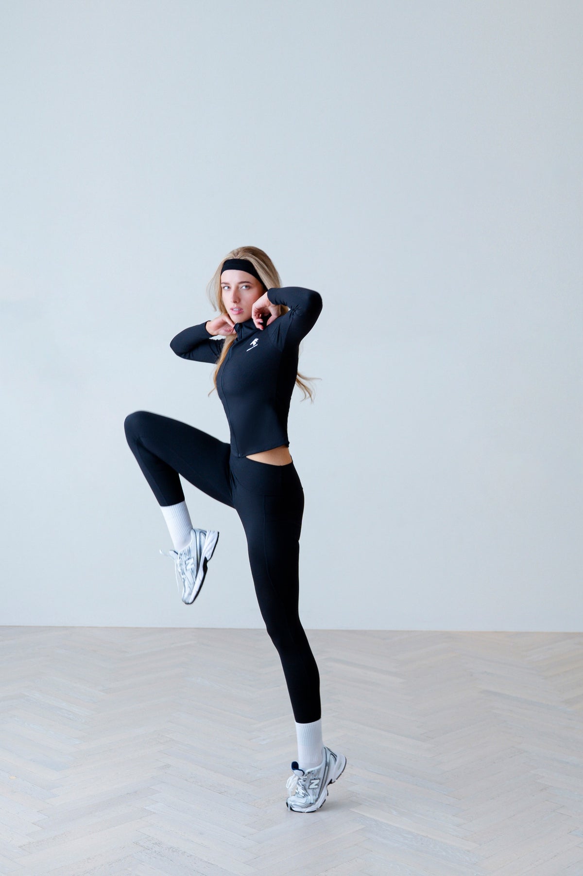 Flattering full length comfy and versatile zip up jacket for everyday high impact training on our soft, free from PFA/BPA quick drying athletic core fabric, designed to feel like second skin.